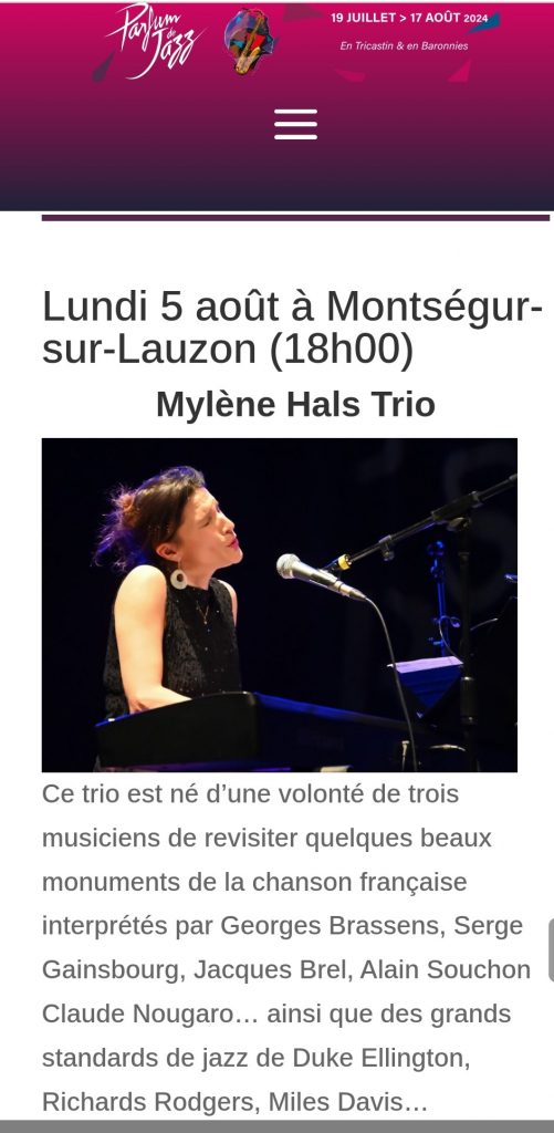Apéro Jazz au vieux village avec Parfum de Jazz – Entrée Gratuite avec Mylène Hals Trio
